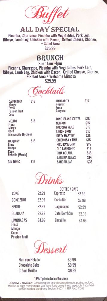 Rio Grande Churrascaria in Hialeah, FL offers a delightful Brazilian dining experience with a focus on succulent meats and a vibrant atmosphere. The rodizio feast presents a variety of flavorful cuts like beef, pork, chicken, and even octopus. Customers praise the friendly staff, cozy ambience, and delicious sauces. The affordable all-you-can-eat options include lunch for $25.99 and dinner for $39.99, making it a great value. The passion fruit and mango caipirinhas are recommended, as well as the crema catalana dessert. The service is attentive, and the modern decor creates a lively Amazon rainforest vibe. Overall, Rio Grande Churrascaria is a must-visit restaurant for those craving a memorable culinary adventure with authentic Brazilian flavors.